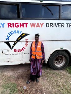 After she found out about the opportunity Safe Right Way offers to women to train for free, she quickly enrolled to train to drive the bus and is the first female bus driver Safe Way Right Way has trained and certified. She has realised her dream.
